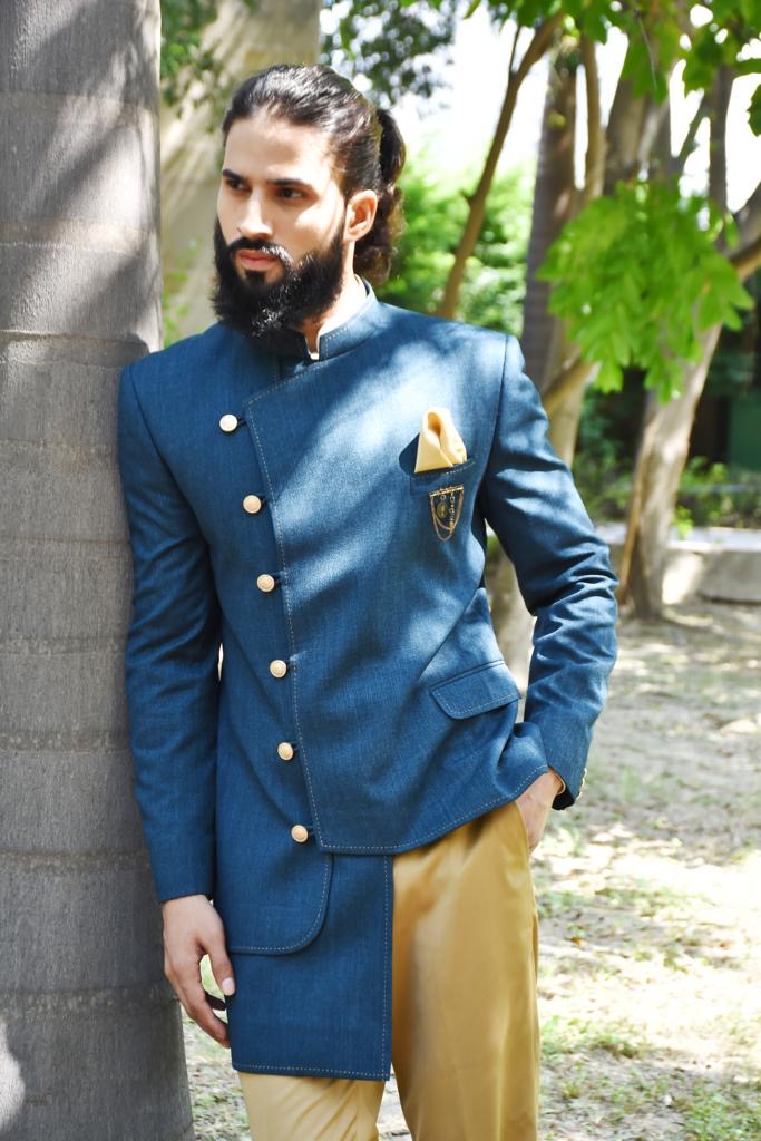 Anghrakja designer combination bandhgala for men in blue colour
