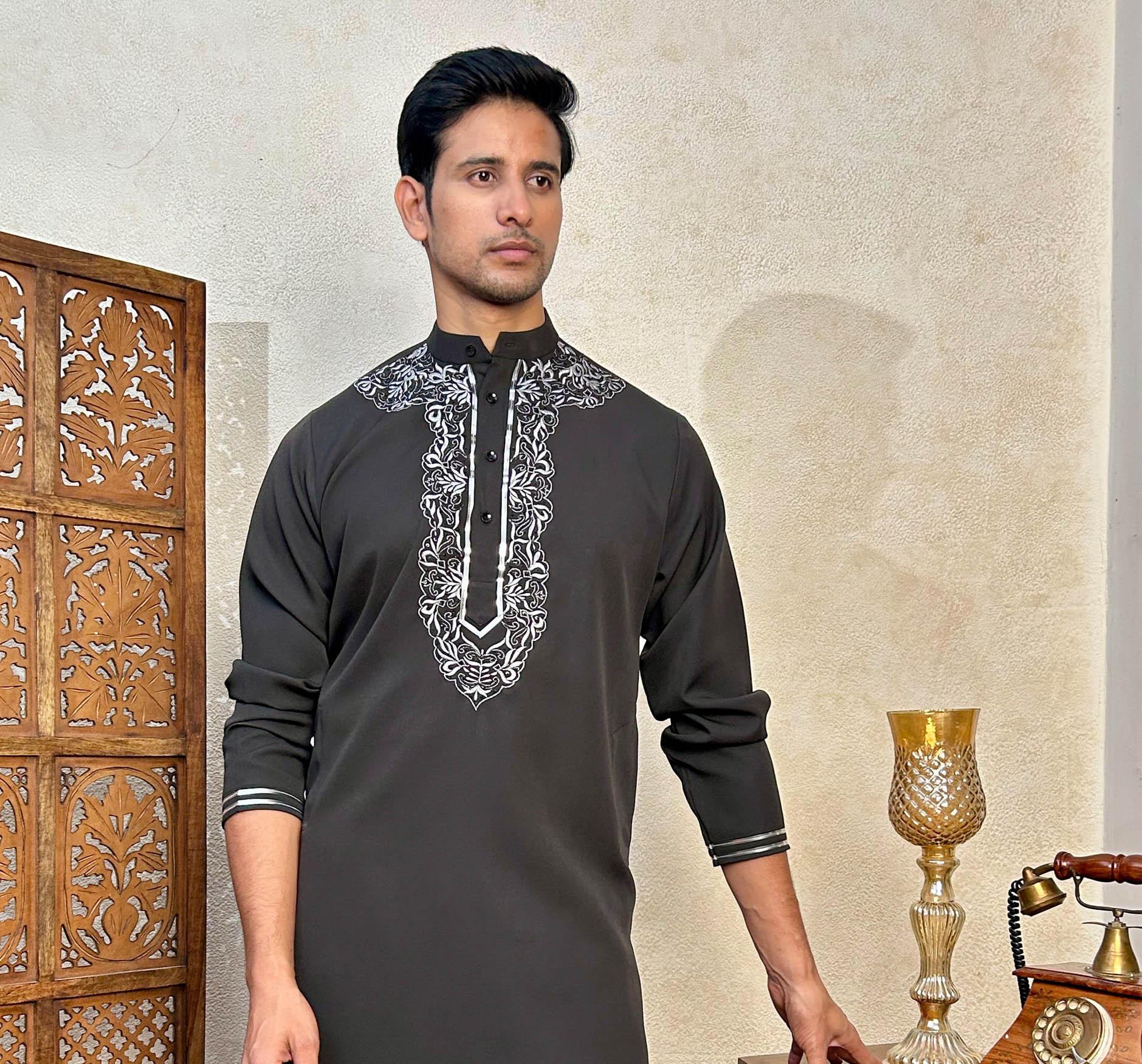 Black hand embroidered designer kurta pyjama set for wedding