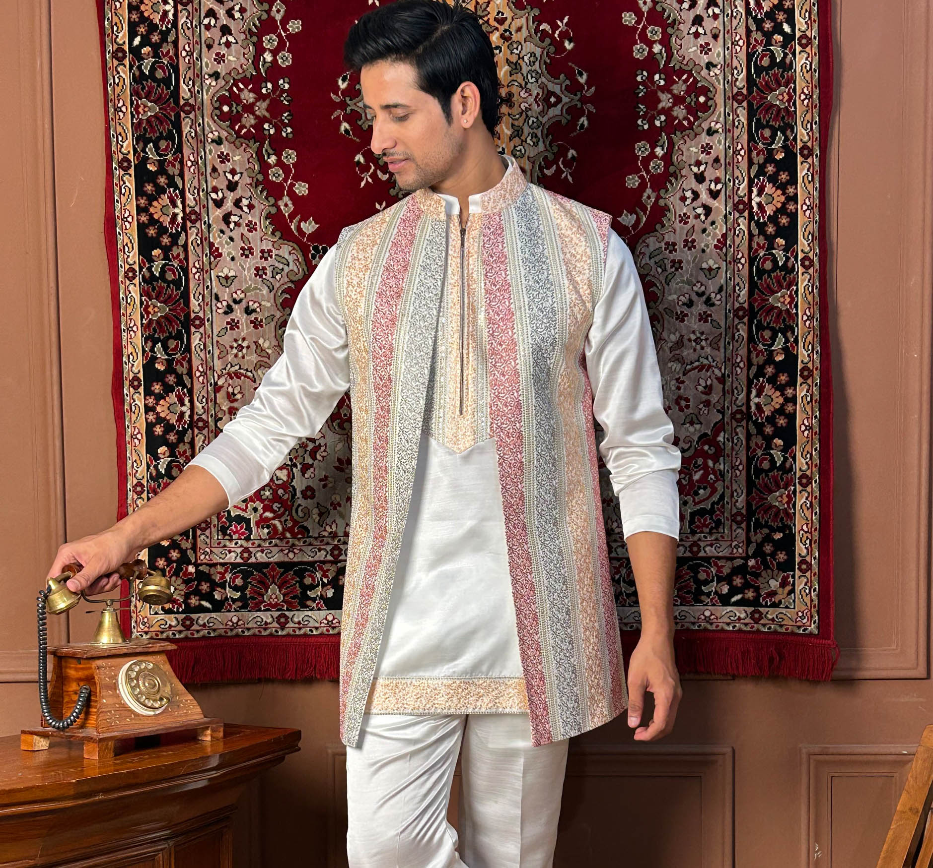 Mens designer kurta pyjama jacket set for wedding