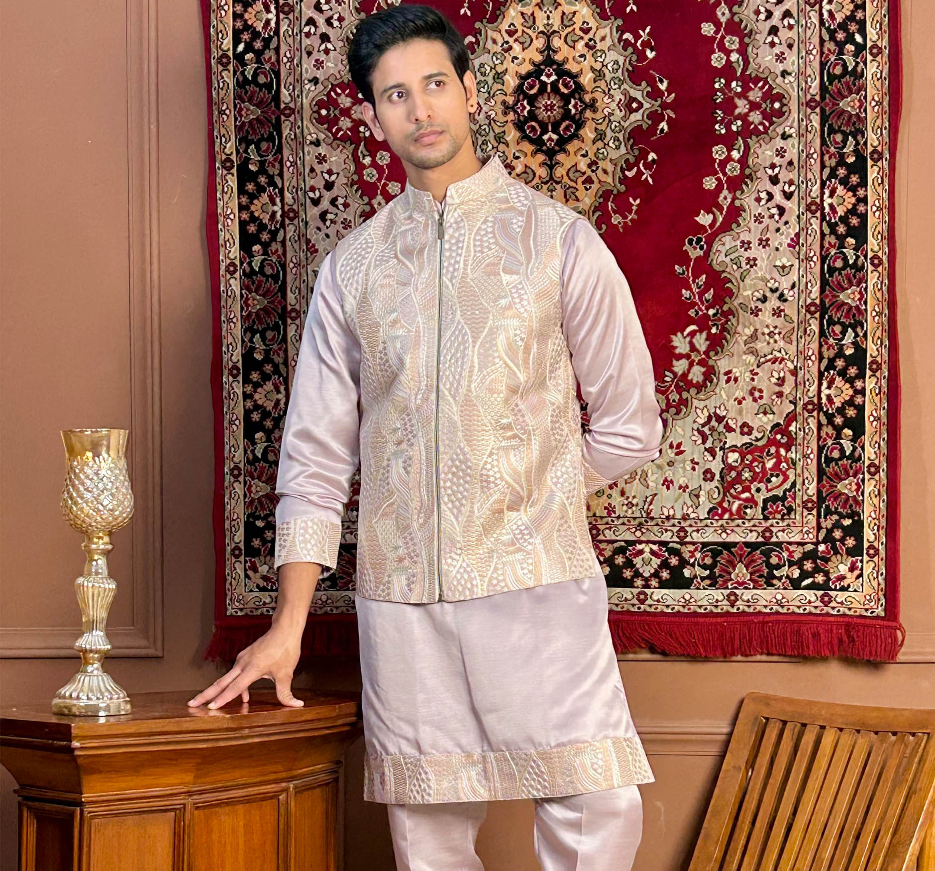 Zip opening jacket with kurta pyjama designer set for men