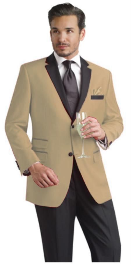 khaki two button tuxedo blazer with black trouser for men