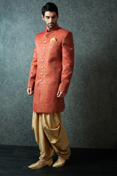 Orange silk indowestern with golden salwar